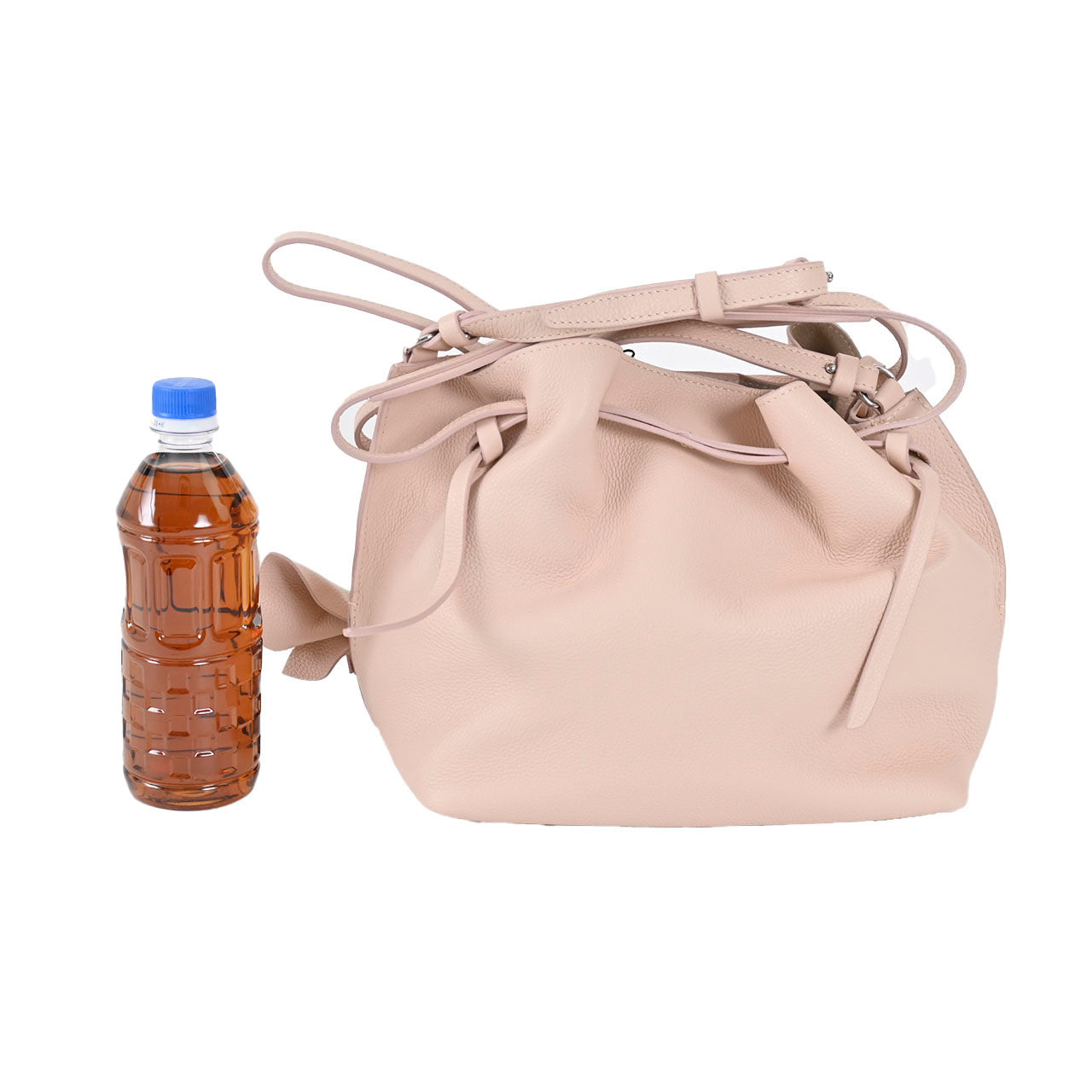 柔らかく上質なカーフレザー生地を使用したお洒落なトート バッグです。 丸みを帯びたフォルムとバッグの上部を巾着風に絞ったデザインとバタフライをイメージしたレザークラフトが更にブランドのステイタスを主張しています。 ナチュラルな裏地のないボンディング加工による、裏表共にレザーの風合いを楽しめる仕様。 内側にはセパレートポーチが付いていて収納もOK! お出かけに必要なアイテムはすべて収納できる大きすぎないサイズ感のバッグは、幅広い着こなしにご利用いただけます。