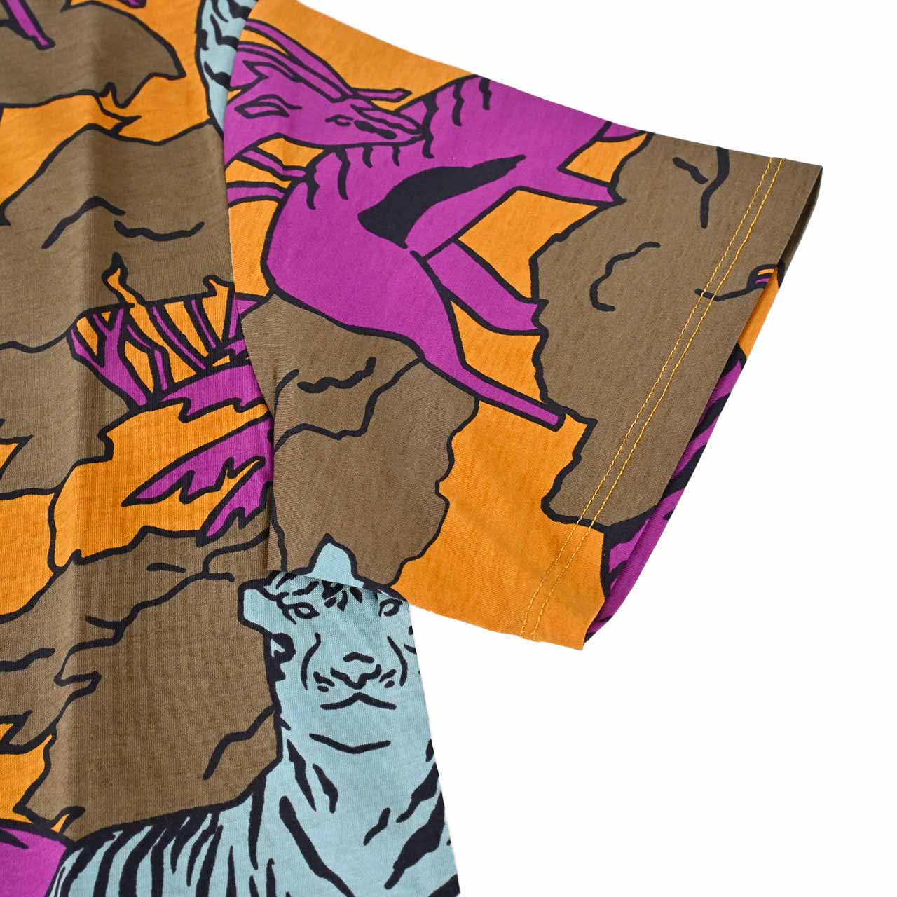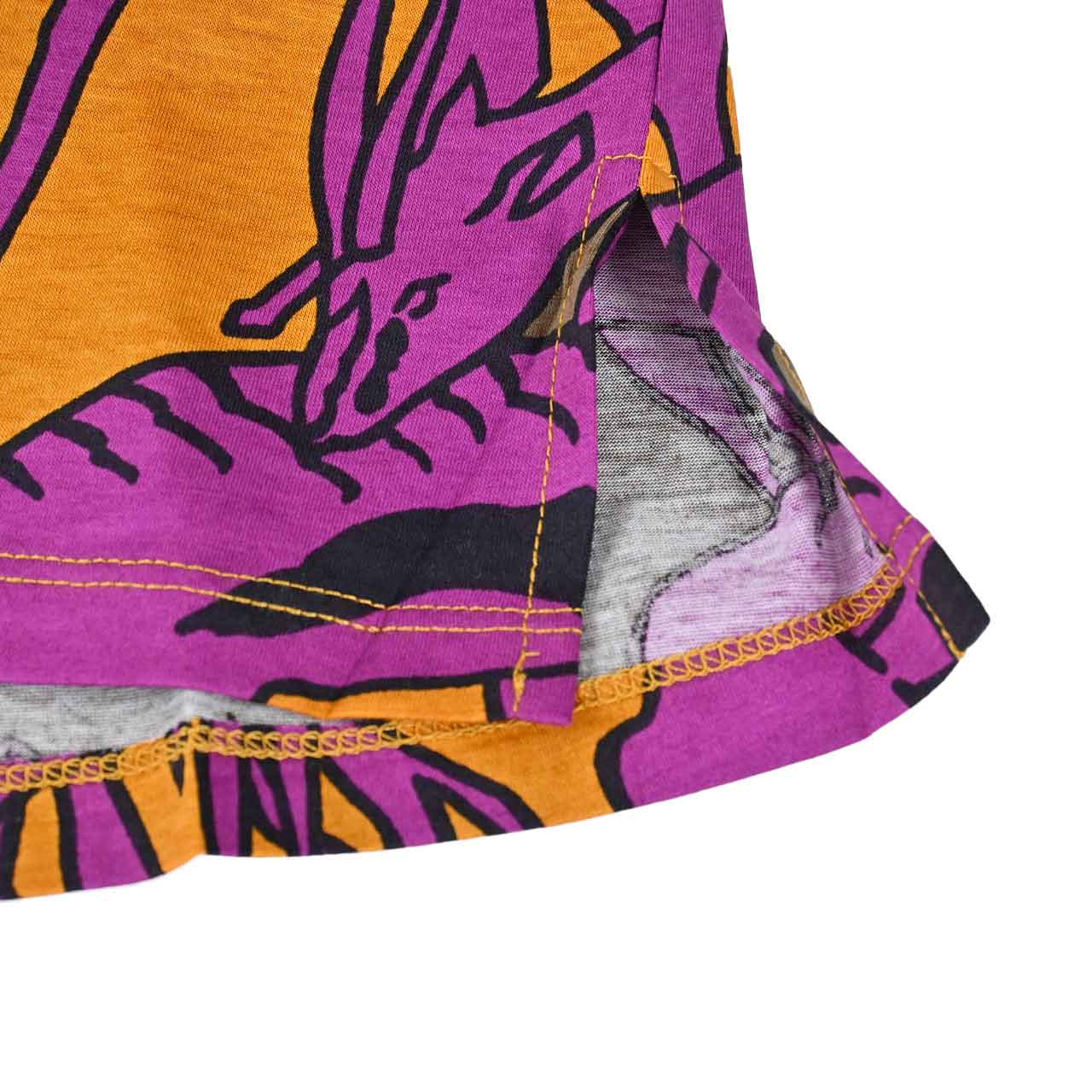 オフィシャルサイトでの紹介コメント 『柔らかなオーガニックコットンを使用したジャージーTシャツ。 コレクションプリントのディテールを全体に施した、爽やかなカラーリングが魅力です。 シルエットはラウンドネックのストレートライン。リラックスしたドロップショルダーと少しボリュームのあるスリーブが特徴的です。 さりげないサイドスリットで着こなしに表情が生まれます。 』