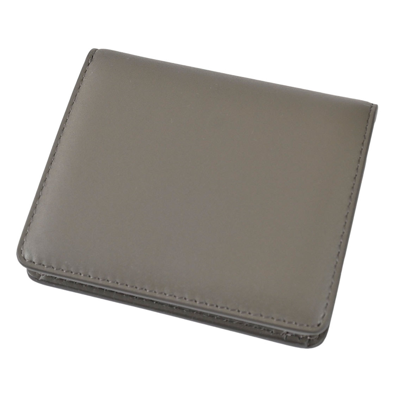 背面にあしらわれたお馴染みのホワイトステッチが、洗練されたアクセントとなる二つ折り財布です。味わい深いシボ加工が施されたカーフスキン本体は、しっかりとした佇まいで高級感を醸し出します。内側には紙幣入れ、カード入れ、スリットポケット、スナップ式小銭入れが完備され、コンパクトながらも実用性に優れた作りです。ミニバッグにぴったりのサイズ感で、さまざまなシーンで活躍するアイテムとなっています。