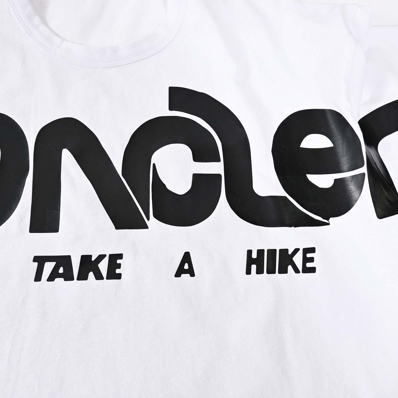 胸元には大胆なブラックの「Moncler」ロゴを配し、その下に「TAKE A HIKE」のメッセージを添えることで、アウトドアへの誘いや冒険心を表現。左裾にはおなじみのブランドロゴワッペンがアクセントに。カジュアルでありながらも洗練されたデザインは、日常使いはもちろん、アクティブなシーンにもマッチします。遊び心とメッセージ性を兼ね備えた一枚です。