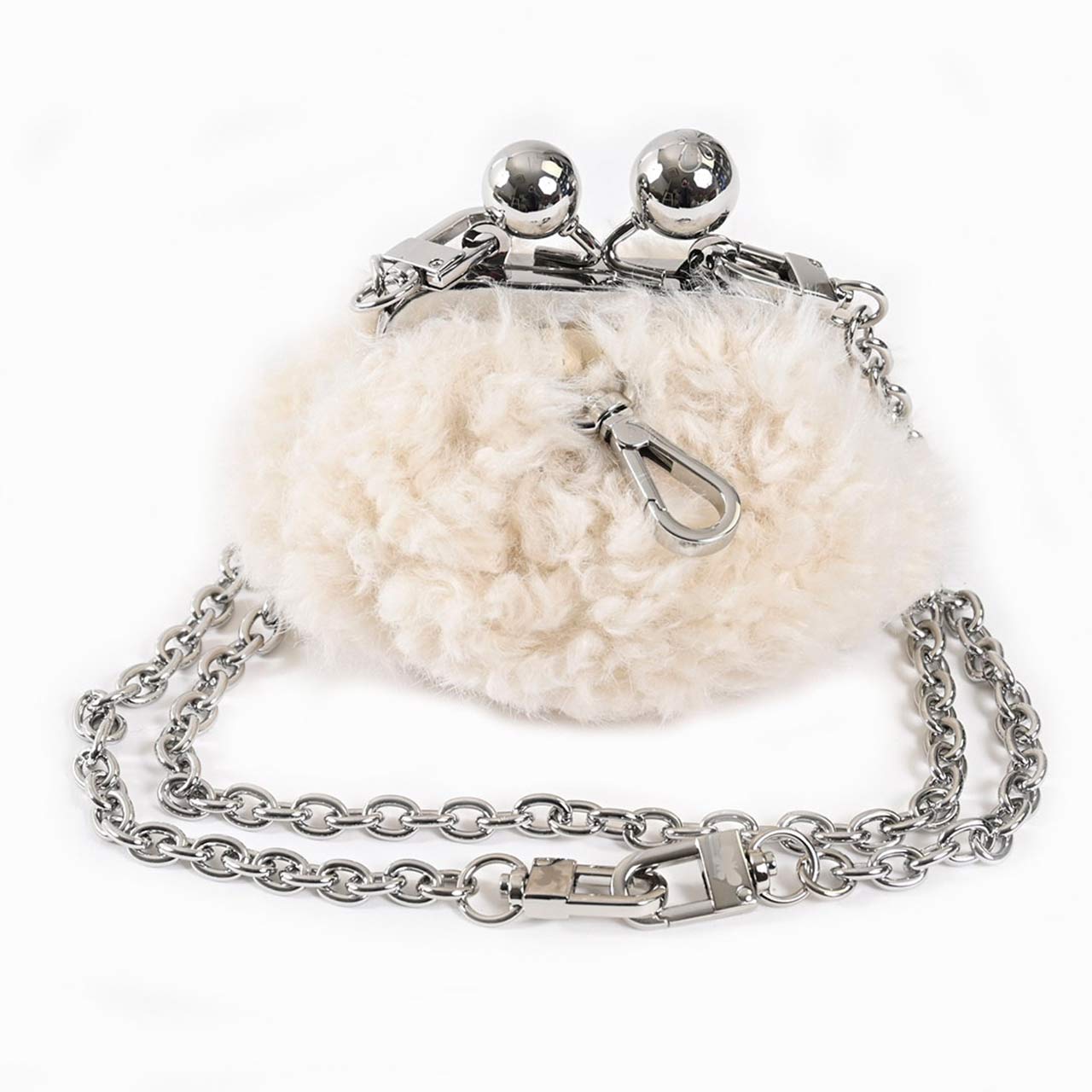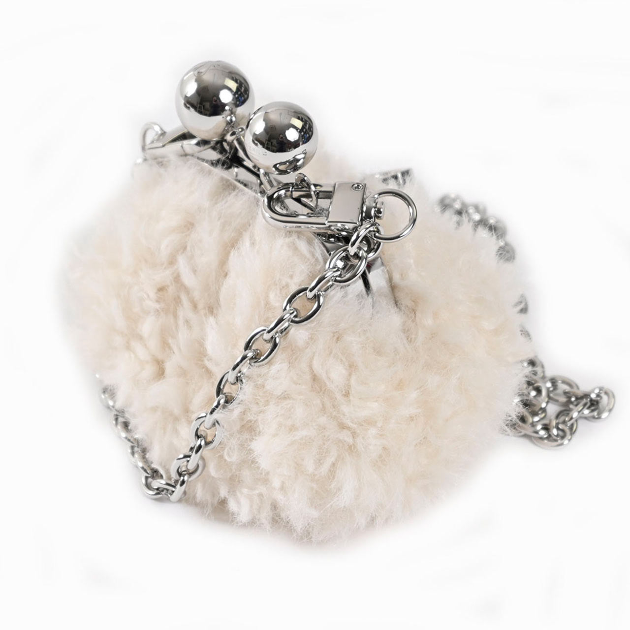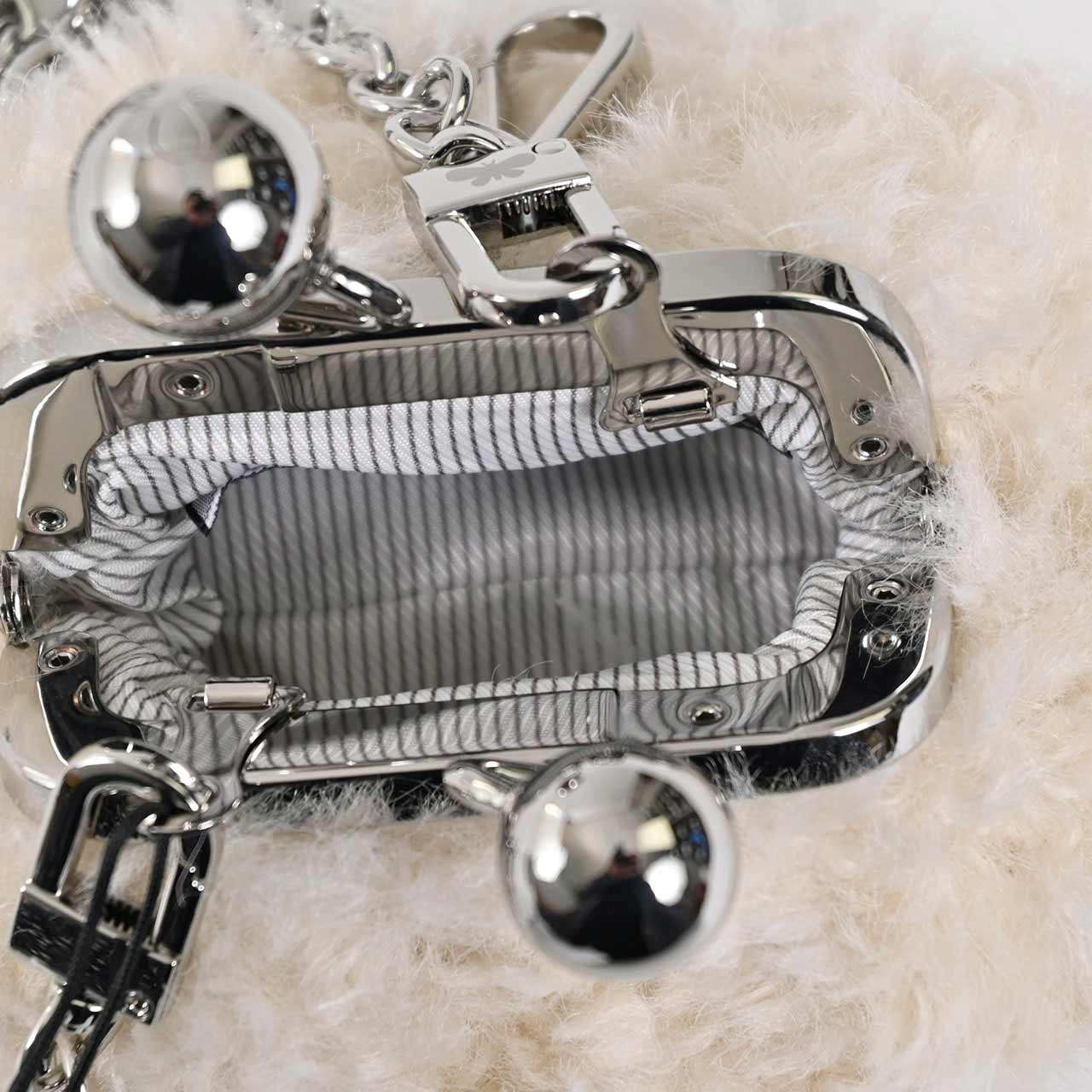 ふんわりとしたバルーンシェイプが愛らしい、WEEKEND MAX MARAのパスティチーノクラッチのミニサイズ。柔らかなエコファーを用いたコンパクトなショルダーバッグです。収納力は控えめながら、カラビナ風の金具付きでバッグチャームのようにも楽しめます。付属のチェーンストラップは取り外し可能で、アクセサリー感覚でコーディネートにアクセントを添えることができる一品です。