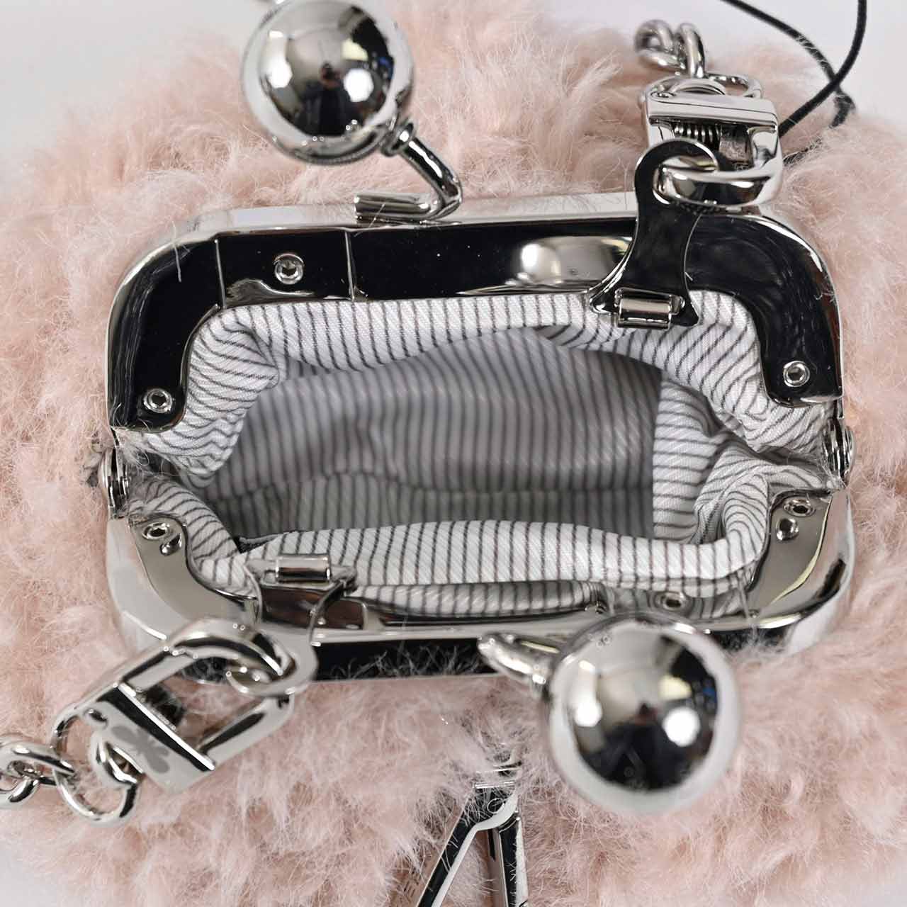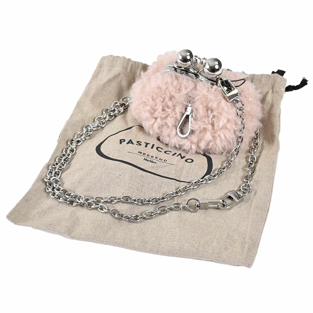 ふんわりとしたバルーンシェイプが愛らしい、WEEKEND MAX MARAのパスティチーノクラッチのミニサイズ。柔らかなエコファーを用いたコンパクトなショルダーバッグです。収納力は控えめながら、カラビナ風の金具付きでバッグチャームのようにも楽しめます。付属のチェーンストラップは取り外し可能で、アクセサリー感覚でコーディネートにアクセントを添えることができる一品です。