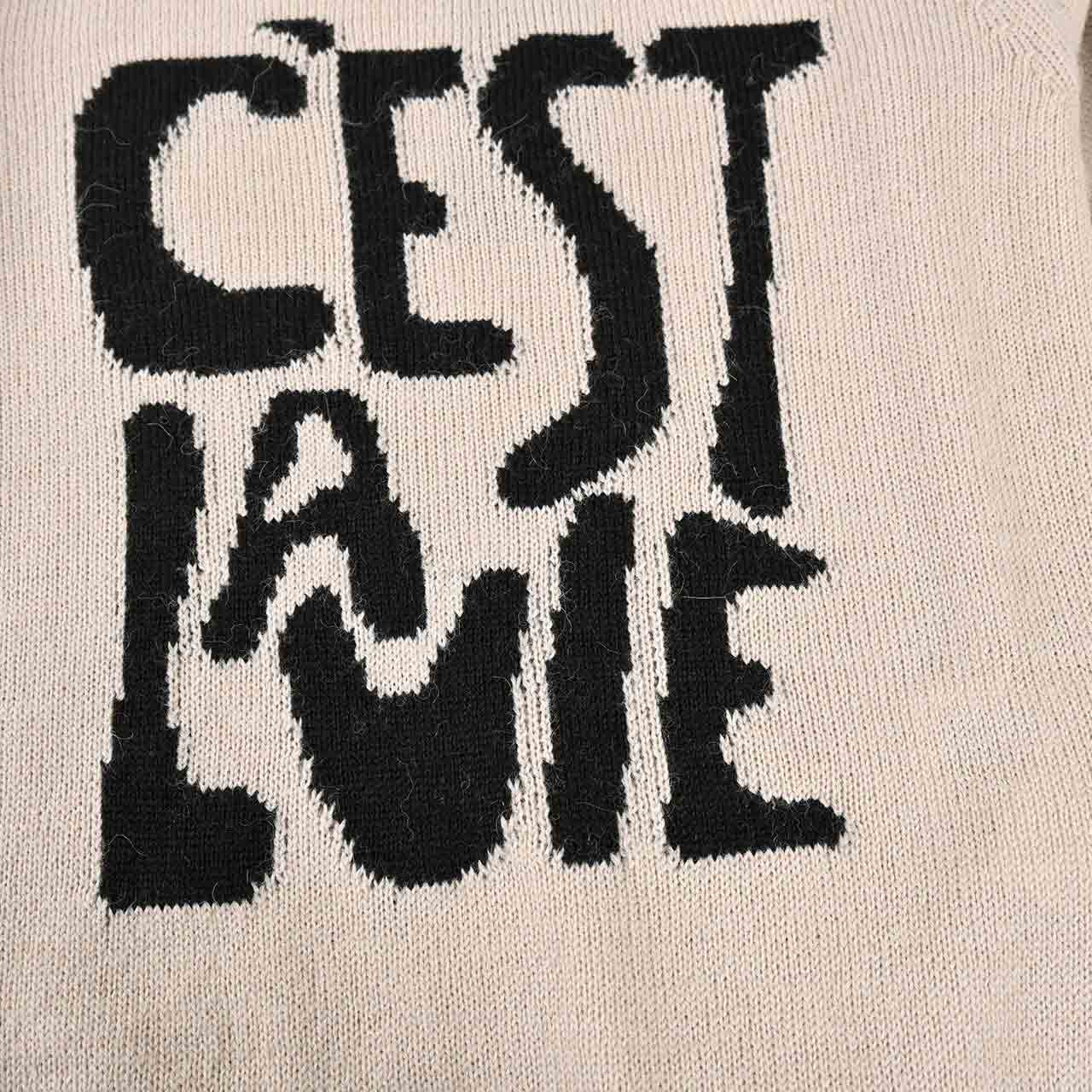 オフィシャルサイトでの紹介コメント 『フロントにコレクションのディテールを施したアルパカウールニット。 アルパカとウールをブレンドし、ソフトな肌触りと保温性を兼ね備え、コンフォートな着心地に仕上げました。 シルエットは、クルーネックに長袖のストレートフィット。 首元、袖口、裾のリブ編みのトリムがアクセントに。 ボトムスを選ばないレングスで、ブラウスやシャツを合わせたレイヤードスタイルもおすすめです。』