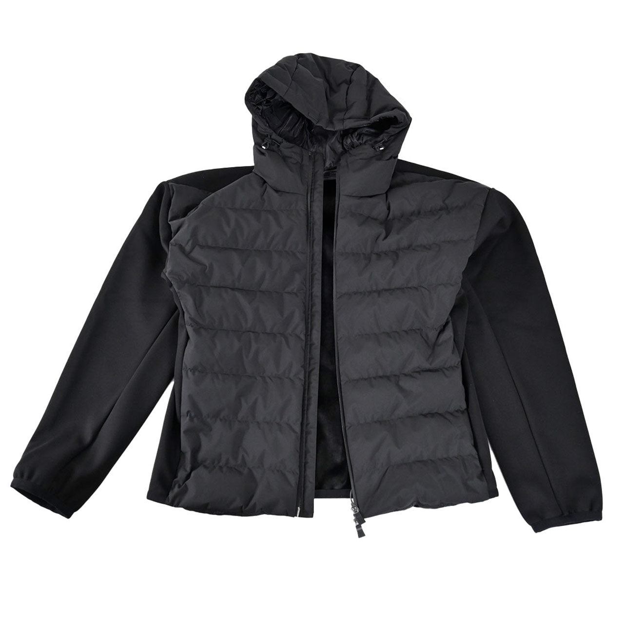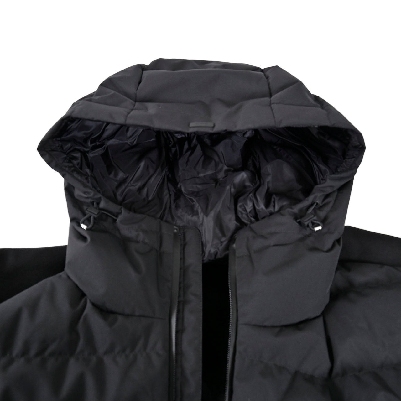 HERNOが提案するダブルフェイス仕様のハイブリッドジャケット。外側にテクニカルなポリエステル素材を使用し、内側はベルベットのように滑らかなタッチ。軽やかなストレッチ性があり、動きやすさと上品さを両立。都会的で洗練された印象を纏う一着です。