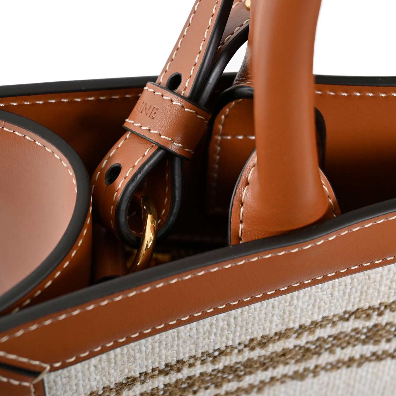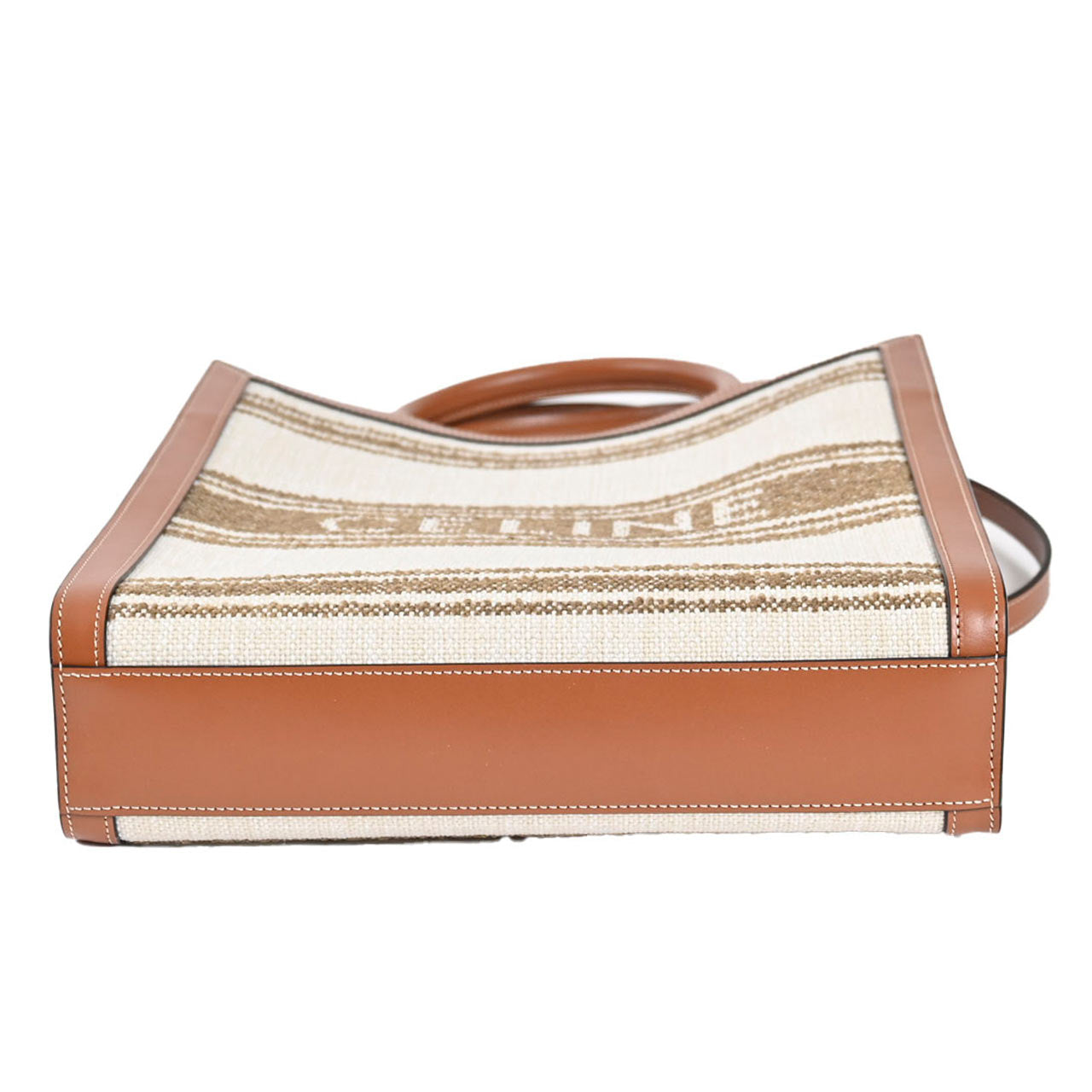 CELINEらしい上品なカジュアルさが魅力のバーティカル カバ。中央の太いストライプ部分に、控えめながらも存在感のある「CELINE」のブランドロゴが配されており、カジュアルな中に上品なアクセントを加えています。