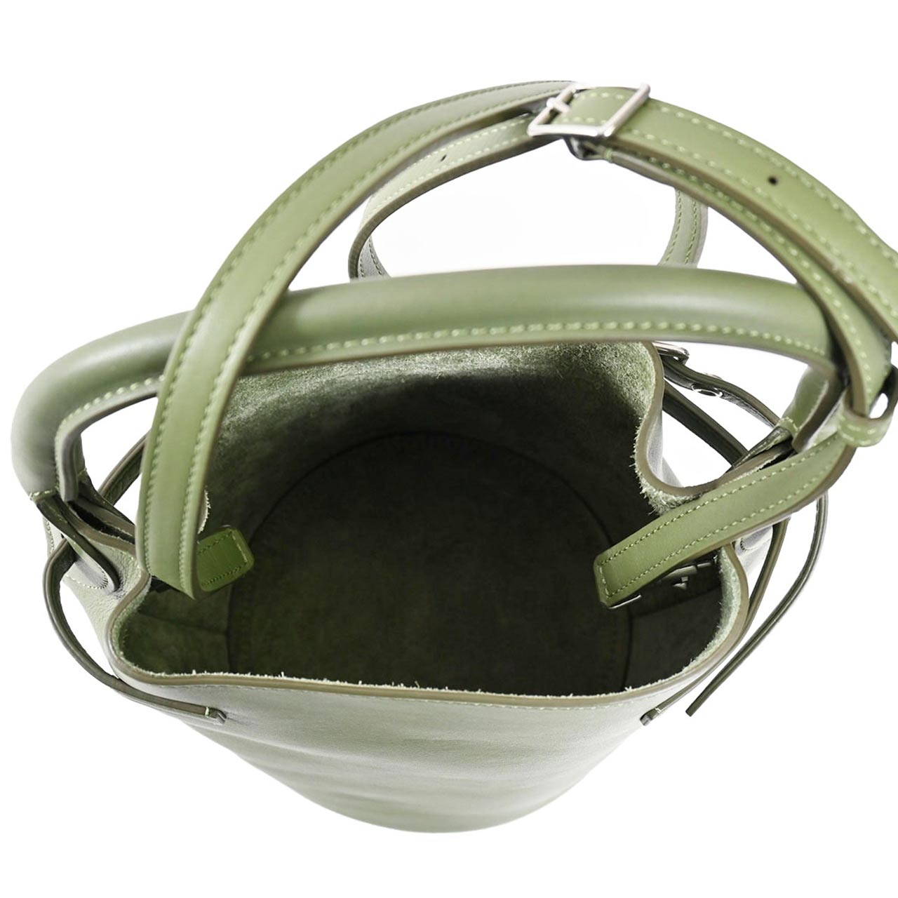 丸みを帯びた底面が特徴的なバケット型。エレガントな曲線を描くデザインは、コーディネートに柔らかなアクセントを加えます。本体サイドには、ベルトのようなレザーストラップのディテールが施されており、デザインのアクセントと「ビッグバッグ」シリーズのアイデンティティを表現しています。