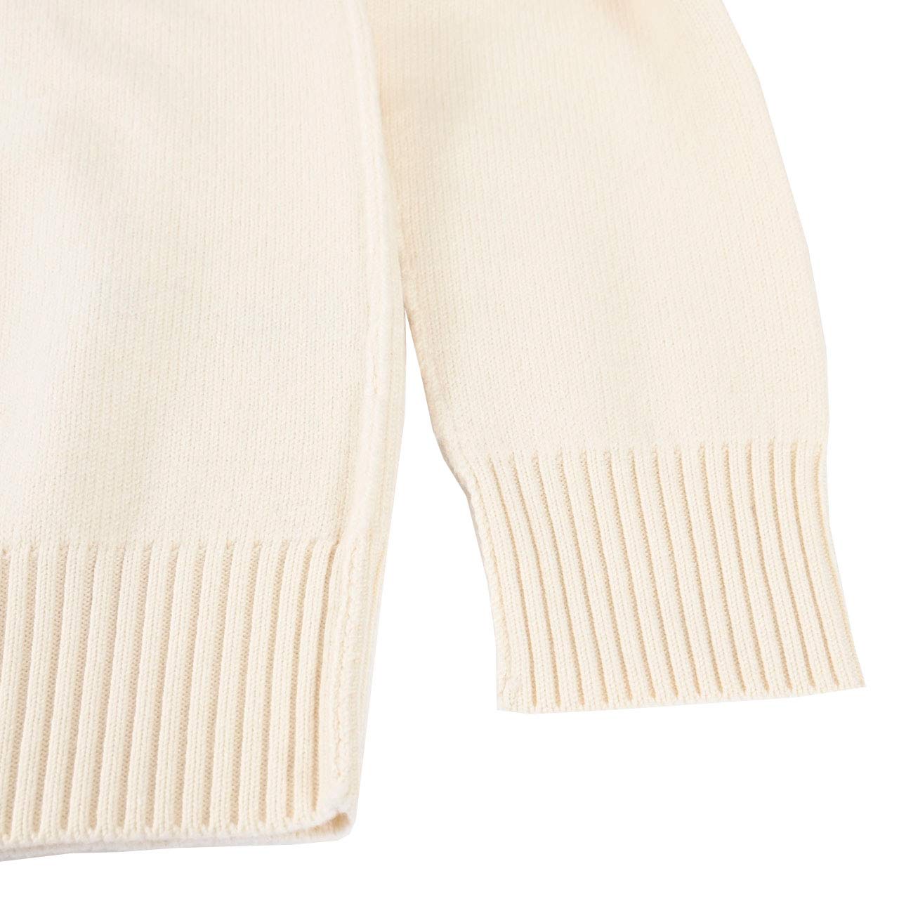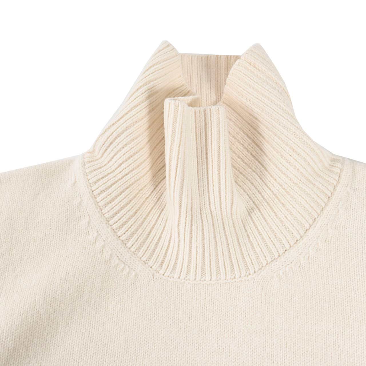RWS認証のピュアウールを使用したこのセーターは、首元が少し立ち上がった筒状のファネルネックを採用しており、タートルネックのように折り返す手間がなく、首周りをスッキリと見せながら暖かさを保てるのが特徴です。胸元のアイコニックな刺繍がアクセントを添える、タートルネックの締め付けが苦手な方にもおすすめしたい上品で快適な一着です。