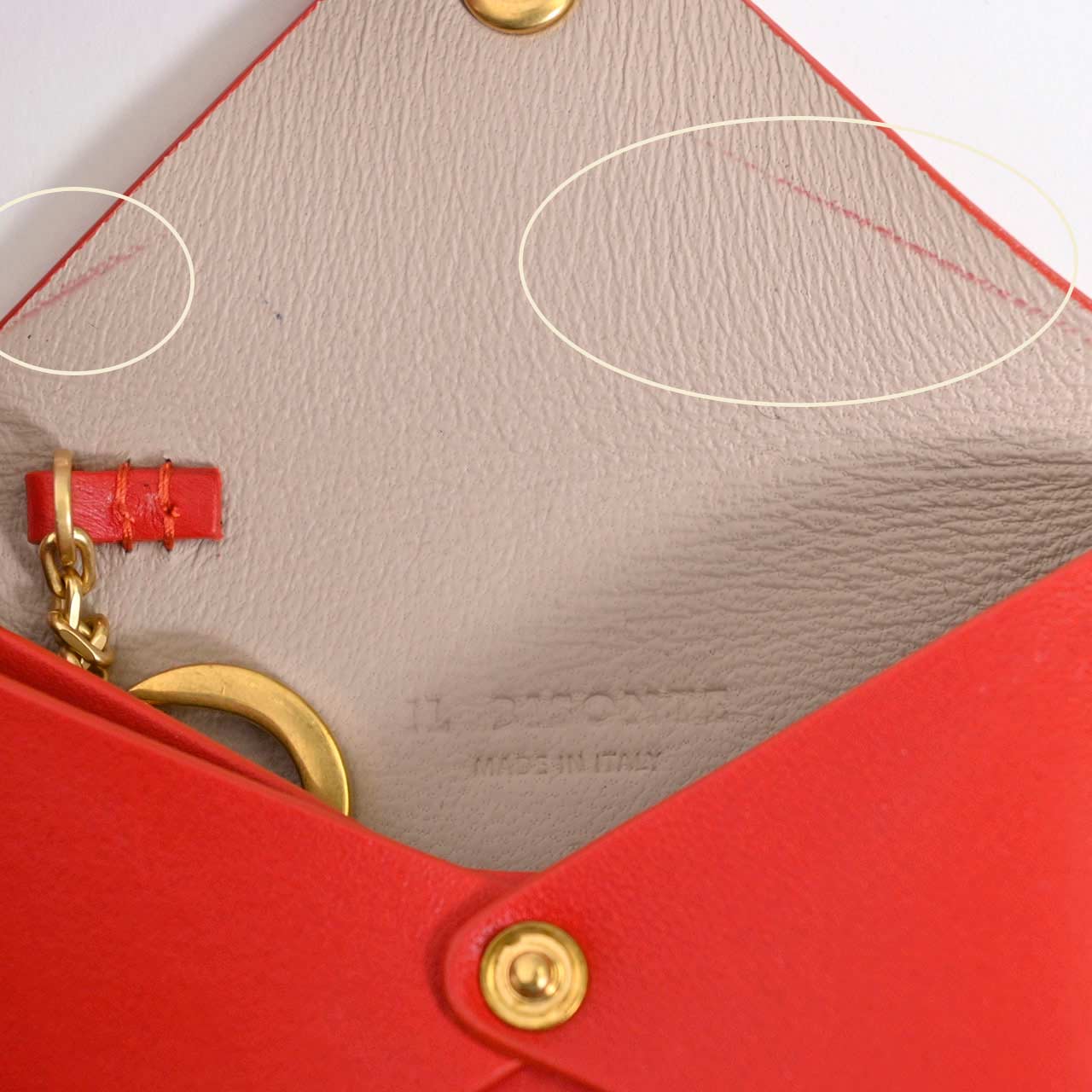 イルビゾンテ IL BISONTE 名刺入れ SCC098 RE184H Castagno Rosa ワケアリ レッド 内側に色移りシミあり レザーを折り紙のように折りたたんだデザインが人気のカードケース。遊び心のあるシンプルなデザインでユニセックスにご使用いただけます。キーリング付きです。