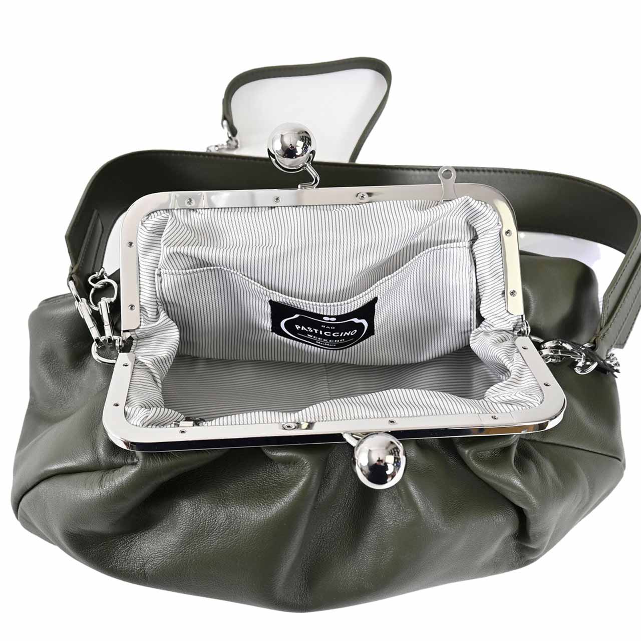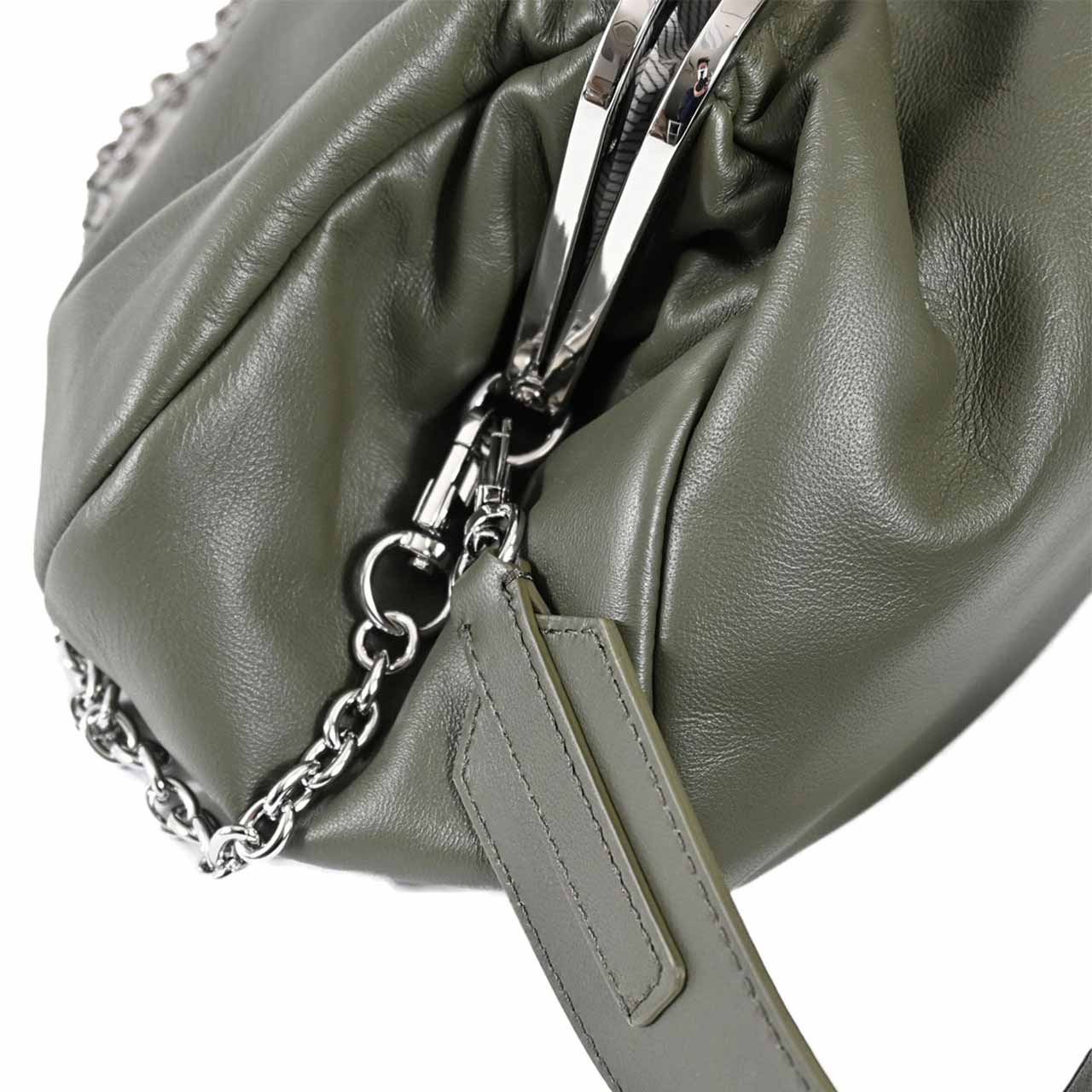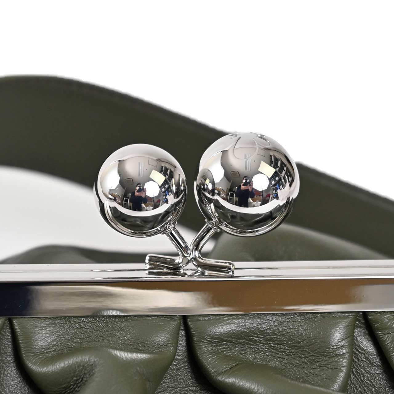 オフィシャルサイトでの紹介コメント 『ふんわりとしたバルーンシェイプが魅力のナッパレザーのパスティチーノクラッチミディアムサイズ。 ナッパ加工を施したラムレザーは手袋のように滑らかで柔らかく、艶が美しいバッグです。 大きめにデザインされた開閉部は出し入れがしやすく、内側には差し込みポケットが付いた実用性も高いモデル。 レザーストラップとチェーンの2種類のストラップが付き、お好みでショルダーバッグやクロスボディとして、ストラップを取り外してクラッチバッグとしてもご使用いただけます。』