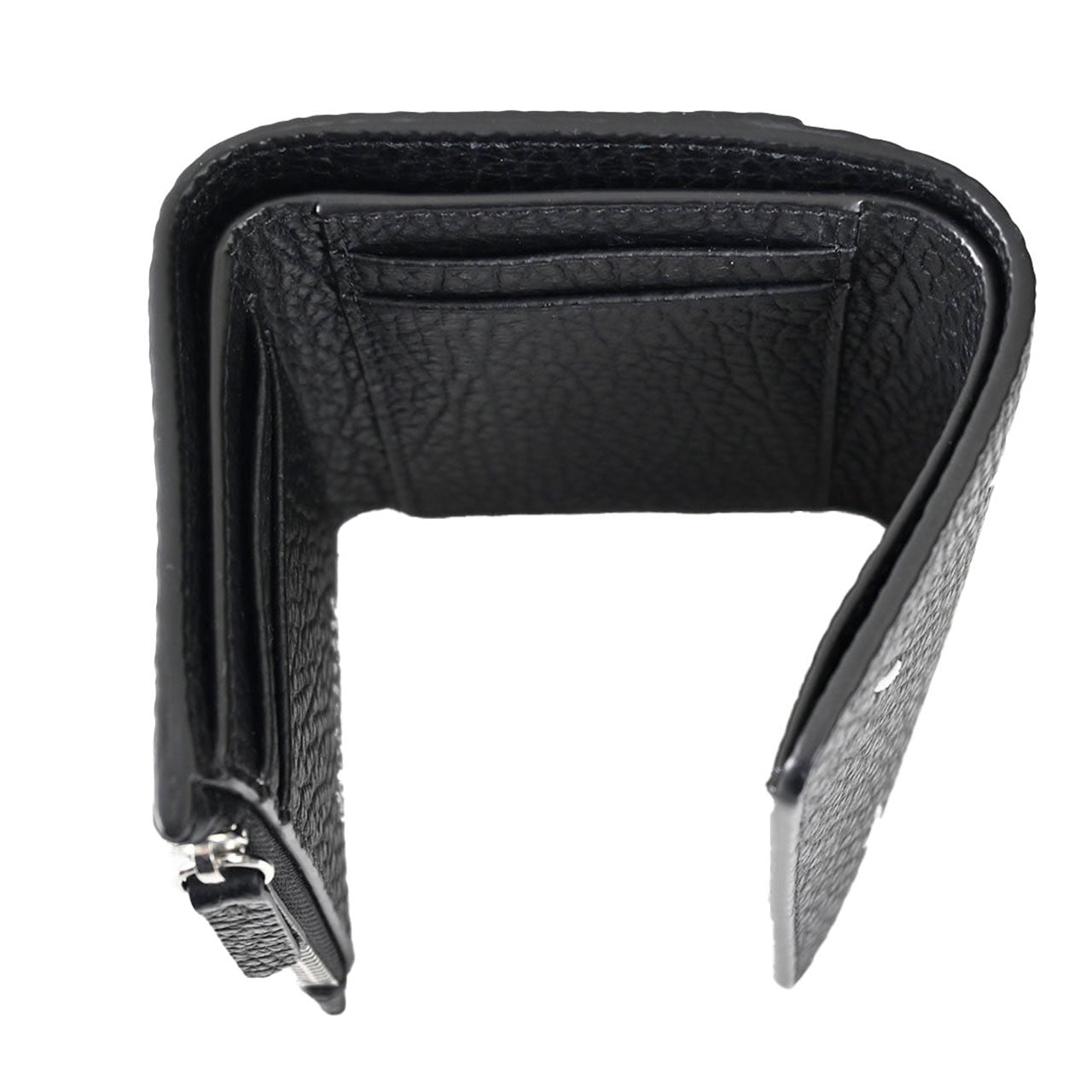 オフィシャルサイトでの紹介コメント 『エンボス加工が施されたグレイニーレザー製の三つ折り ウォレットです。内側には4つのカードホルダーとファスナー付きのセクションが備わっており、ナンバリングロゴが配されています。バックには、通常のファッションブランドのラベルとは対照的なメゾン マルジェラのシグネチャーの白い4ステッチがあしらわれています。』